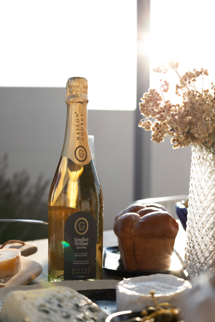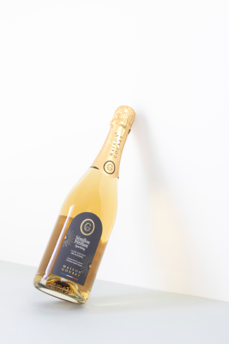 Cuvée de cépage Sémillon Bio Pétillant, d’inspiration champenoise, sans alcool, est une proposition élégante, festive et gastronomique, pour l’apéritif, les séminaires, fêtes…